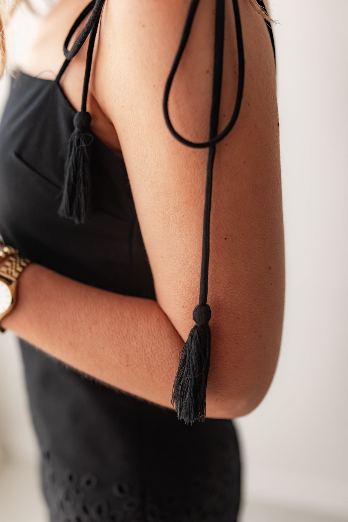 The Take Me There Eyelet Dress is your elevated take on the classic little black dress. Designed with a sleek, flattering silhouette and delicate eyelet detailing along the hem, it brings just the right amount of feminine charm with a modern edge.