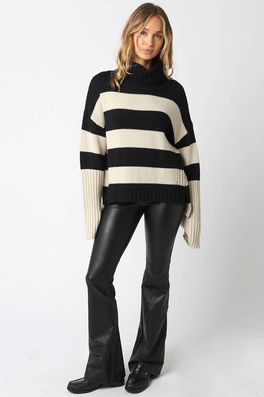 Effortlessly chic and undeniably cozy, The Kaila Knit Sweater is your new go-to for laid-back style. Featuring a timeless black and cream stripe pattern, this oversized knit drapes beautifully for that relaxed, modern vibe. Perfect for layering or wearing solo, it's the kind of sweater that makes you feel put-together without trying too hard. Snuggle into comfort while turning heads.
