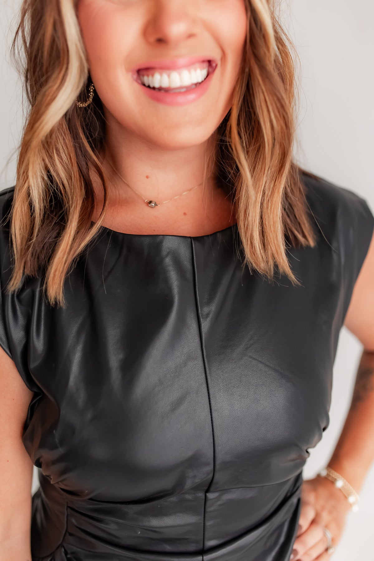 - Effortlessly Chic: The classic black leather-like fabric gives this dress a sophisticated and timeless edge.