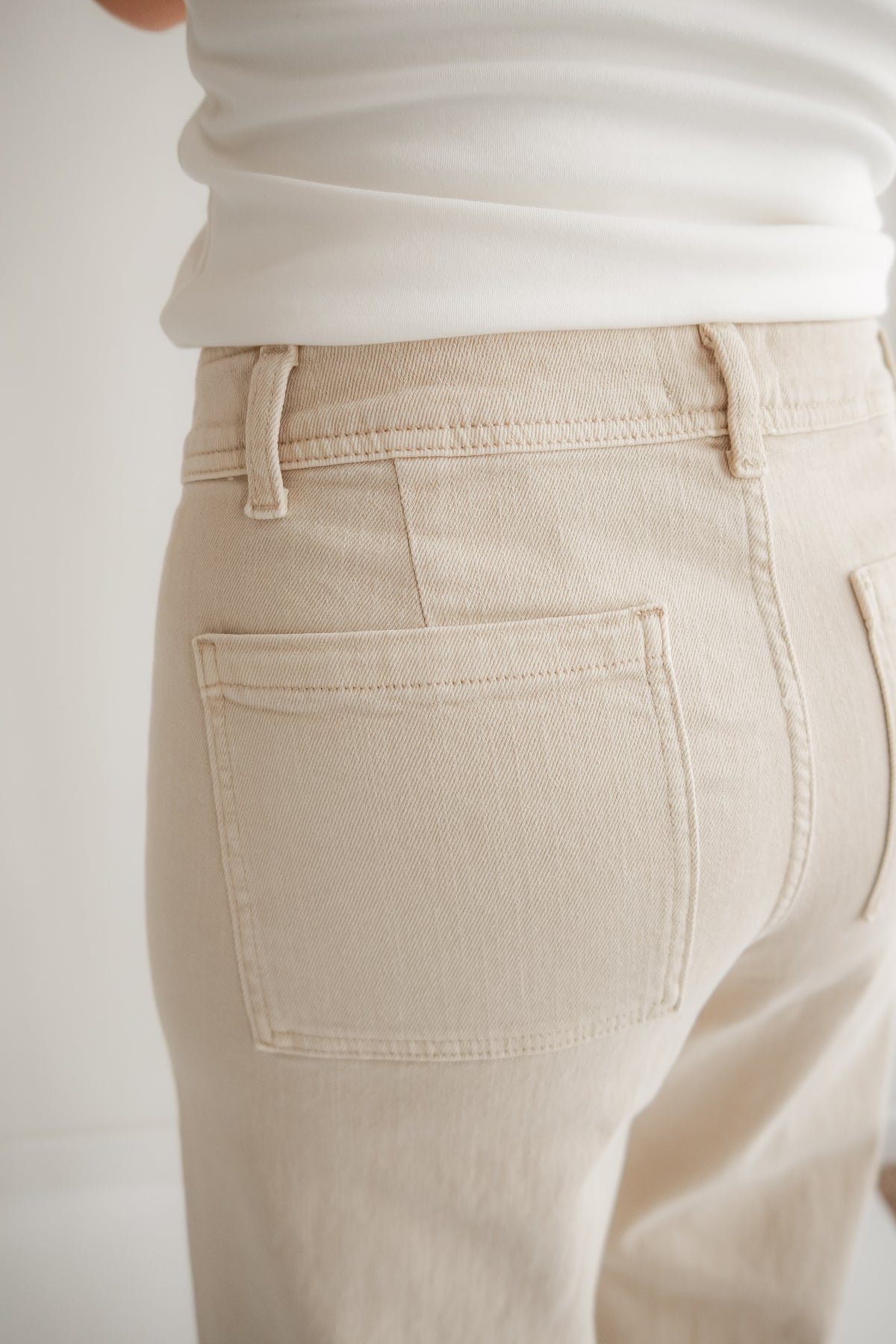 Elevate your everyday wardrobe with The Sloane Straight Wide Leg Pants. Crafted from premium ecru wide leg denim, these pants offer the perfect blend of a structured look and a stretchy, ultra-comfortable fit. Designed for maximum versatility, the Sloane transitions seamlessly from casual coffee runs to polished office wear, making them the most essential neutral wide leg trousers in your closet.