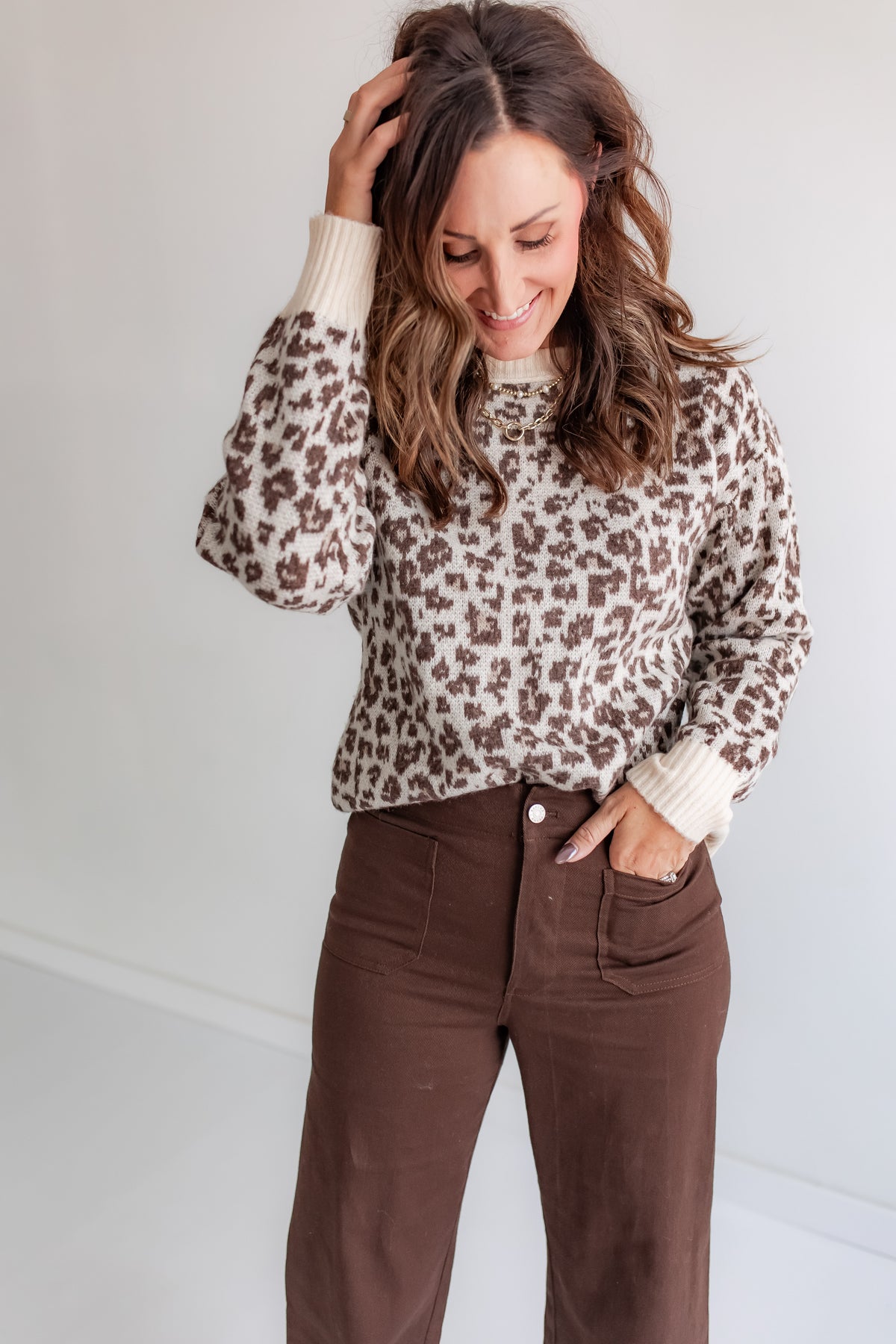 Unleash your wild side in the Luxe in Leopard Sweater. This impossibly soft sweater features a classic neutral leopard print that is both chic and timeless. Cream-colored ribbing on the cuffs, hem, and neck adds a polished touch to the design. This sweater pairs perfectly with our brown pants, skirts, or your favorite denim.