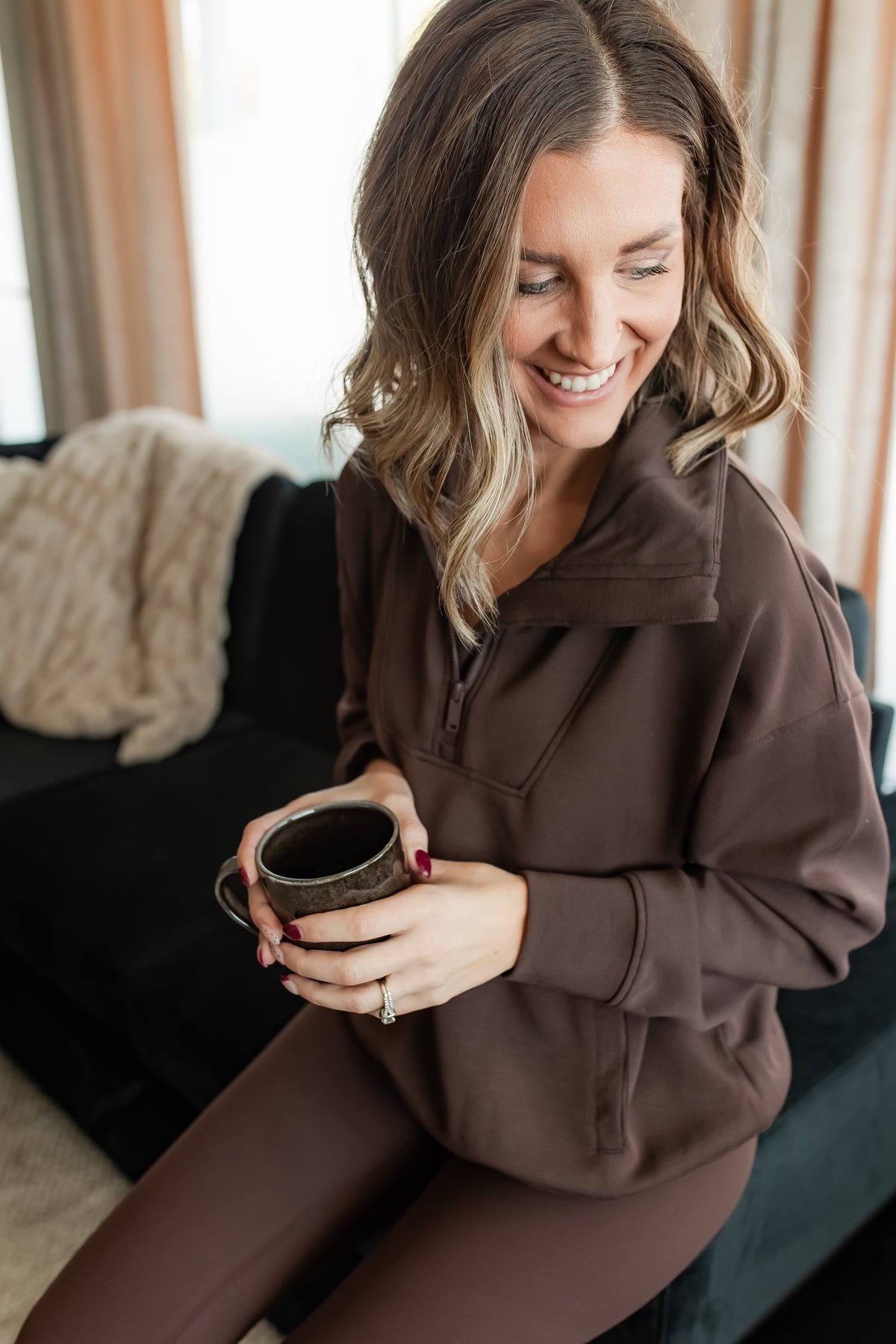 Achieve ultimate leisure comfort with The Cool Down Scuba Pullover in rich Espresso. Made from an incredibly soft modal fabric, this pullover features a sporty quarter-zip and a classic collar. Its premium feel and sophisticated dark brown hue make it an elevated essential for relaxing.