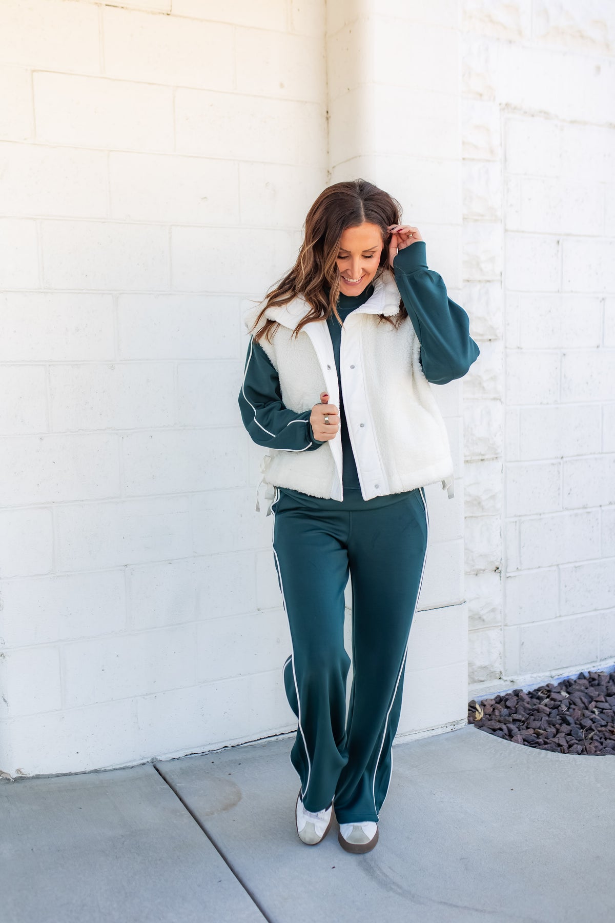 - Styled With: The Final Stretch Leggings- Espresso | The Cool Down Scuba Pullover | The Sundown Scuba Piping Pants | The Sundown Scuba Piping Pullover