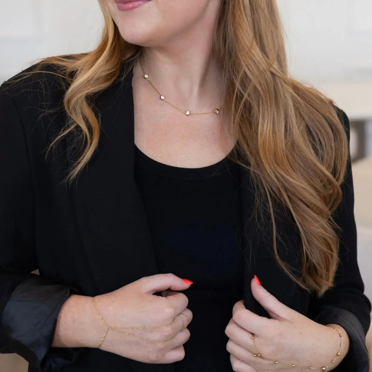 Embrace subtle, lasting sparkle with The Dainty Diamond Necklace. This exquisite piece features a dainty chain accented by small, brilliant diamond details (or high-quality diamond simulants) placed throughout the length of the chain. It is designed for everyday wear and durability, boasting a waterproof finish and backed by a lifetime warranty. It is perfect for wearing solo or layering seamlessly with other chains.