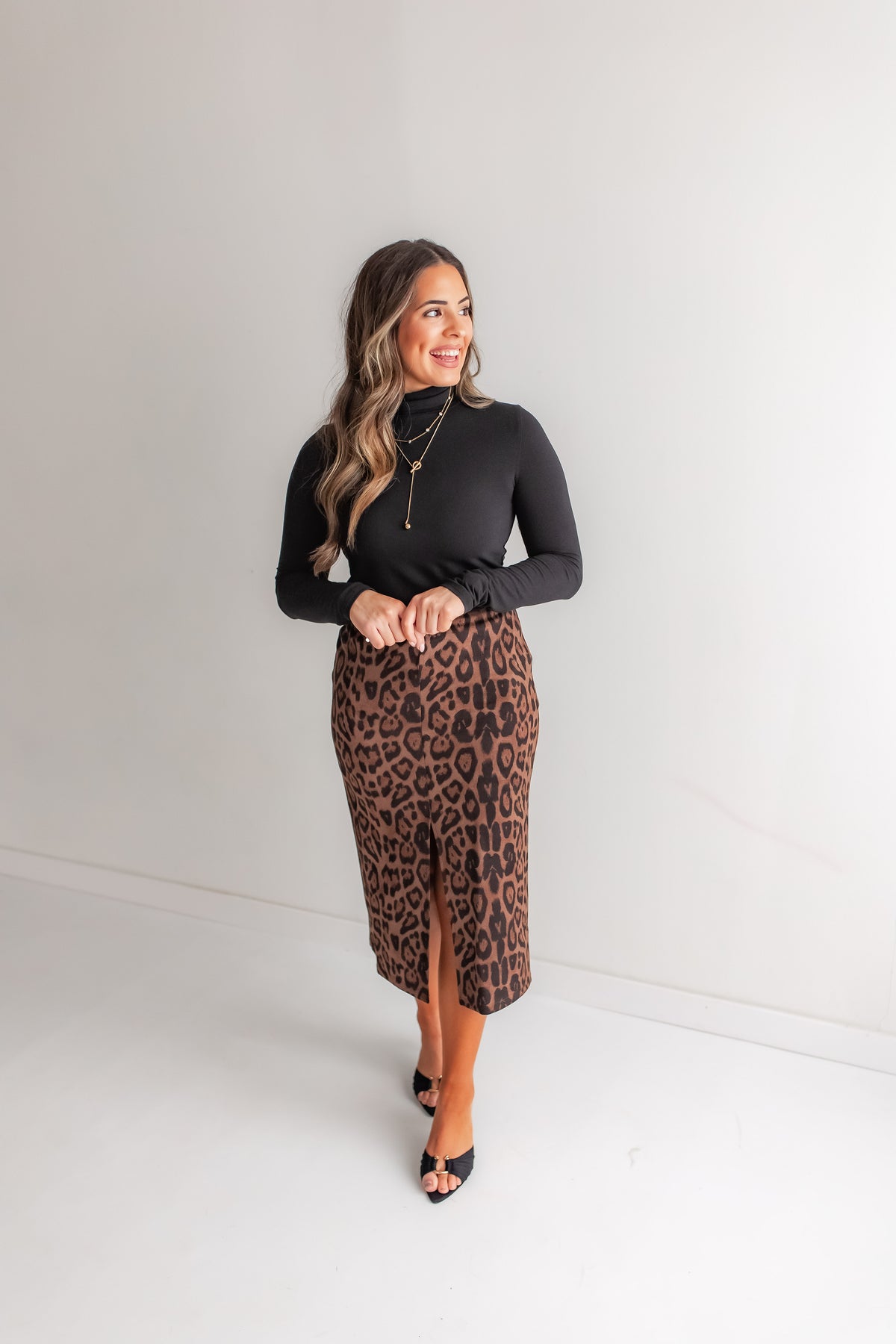 The Signature Turtleneck Top in classic Black is the essential foundational piece for your cold-weather wardrobe. This simple black long-sleeve turtleneck is made from a super-soft fabric, providing a sleek, non-bulky layer. It's the perfect basic for layering under jackets, blazers, and dresses, or wearing alone with skirts and denim.